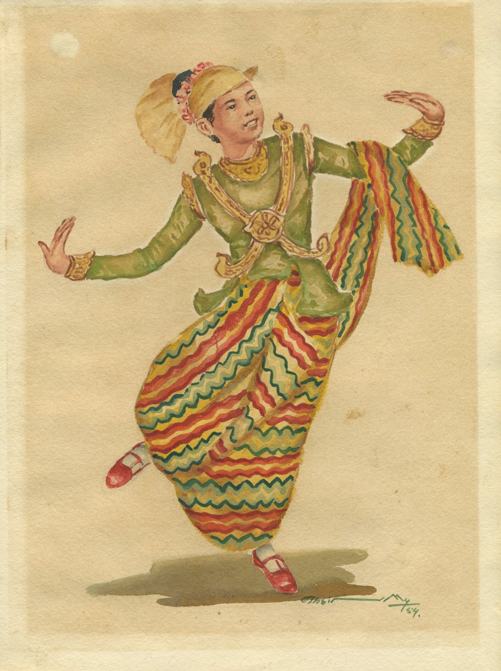 Signed and dated ‘Thein Mg/54.’ in the lower right.